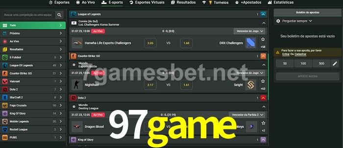 A aposta 97game oferece aos jogadores a experiência mais conveniente de apostas em eSports!